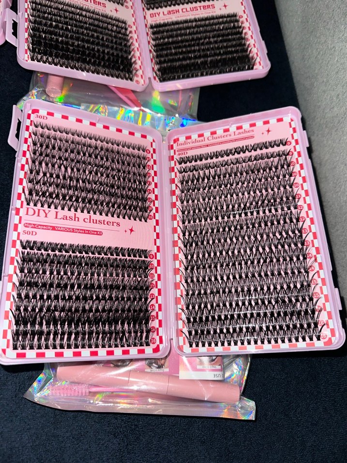 Koyu pembe renkte, DIY uygulama için kümeler halinde düzenlenmiş takma kirpikler. Hacimli görünüm sağlar, kullanımı kolay tepsilerde sunulur. ️