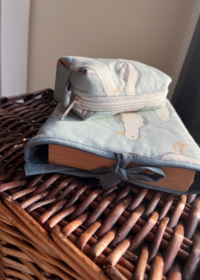 Kitap tablet kılıfı 26 cm boy 20 cm eninde, kalemlik le birlikte set halinde. Duck kumaş leke su tutmaz