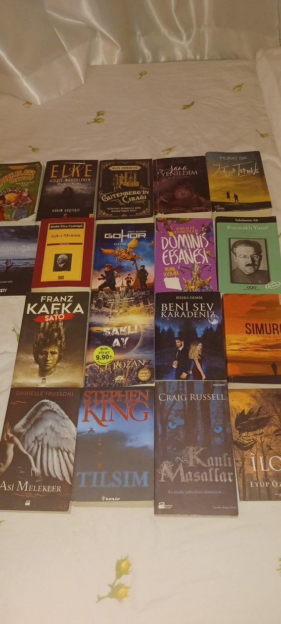 Franz Kafka, Stephen King ve diğer yazarların eserlerini içeren kitaplar Farklı türler ve yazarlardan oluşuyor. tanesi 30 TL . Tılsım satıldı