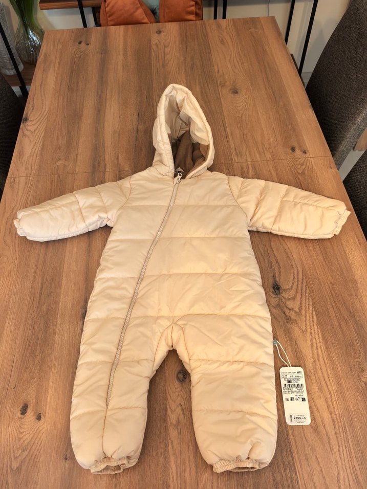 Açık bej , kapüşonlu ve önden fermuarlı kışlık bebek mont şeklinde tulum. Kitikate markasının hem kız hem erkek bebeğe uygundur. 12-18 ay ölçülerine göredir. Hediye gelip bedeni uymadığı ve değiştirme süresi geçtiği için etiketli hiç kullanılmamıştır.