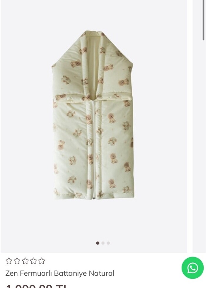 88*83cm ebatında fermuarlı battaniye. Çok kullanışlı geceleri bebeğiniz üstünü açmış mı diye düşünmüyorsunuz. İsterseniz tamamen açarak oyun matı gibi de kullanabilirsiniz makinede yıkanabiliyor 1 ay kadar kullandık herhangi bir kusuru yok