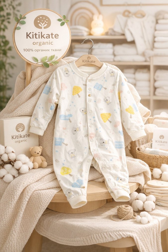 kitikate Uzun Kollu Pamuk Organik Bebek Tulum