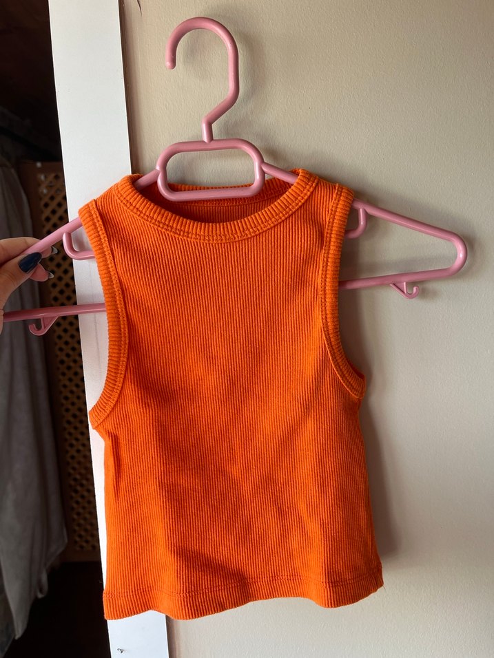 yüksek yakalı, kolsuz ve triko kumaştan pastel turuncu renkte, rahat kesimli bir atlet.