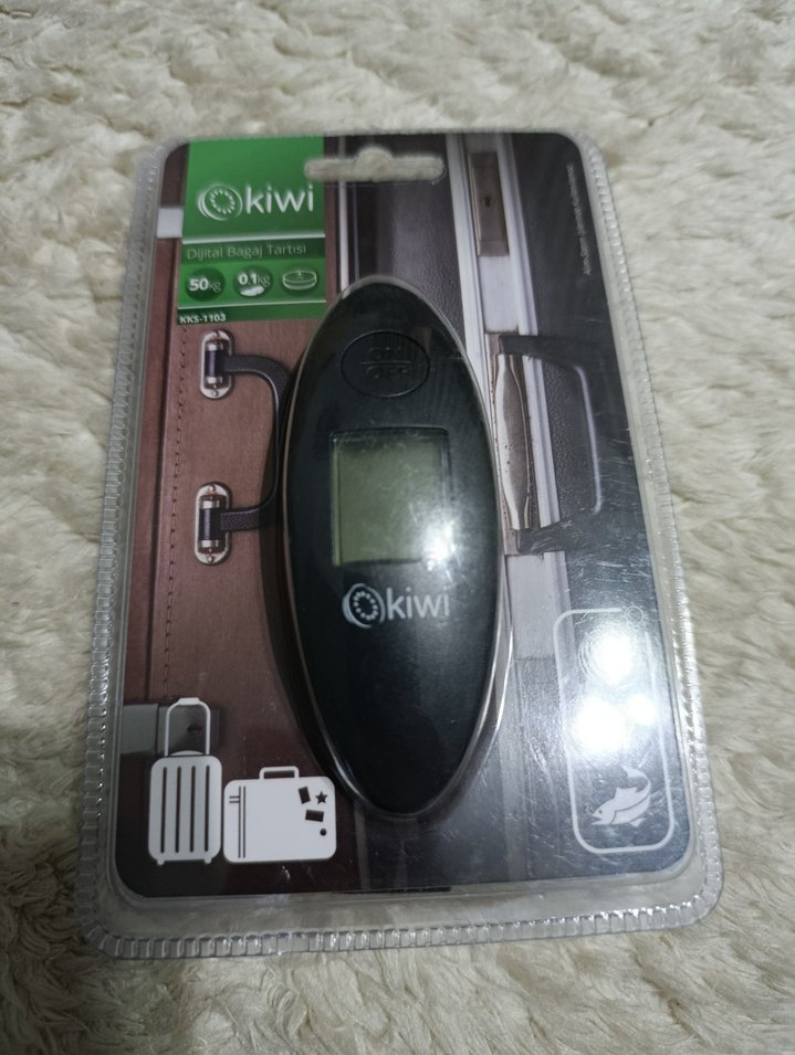 kiwi 500 dijital bavul tartısı, koyu kahverengi gövdesi ve kolay okunabilir LCD ekranı ile seyahat için uygundur.