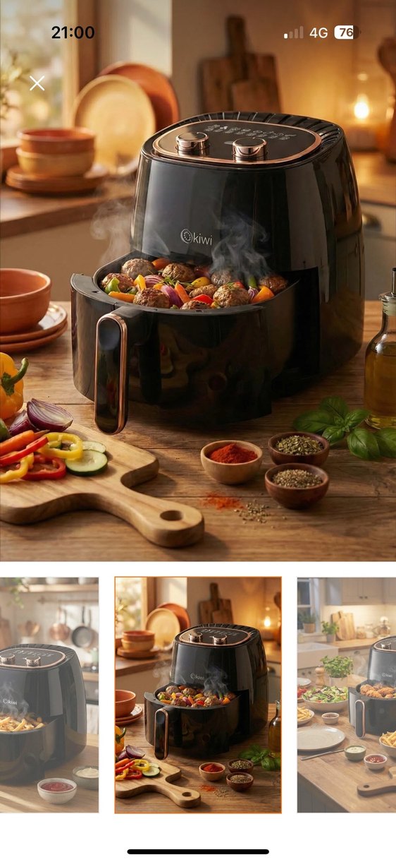 Kiwi marka karartılmış haki renkli elektrikli fritöz, az yağ ile pişirme imkanı sunar ve kullanımı kolaydır.