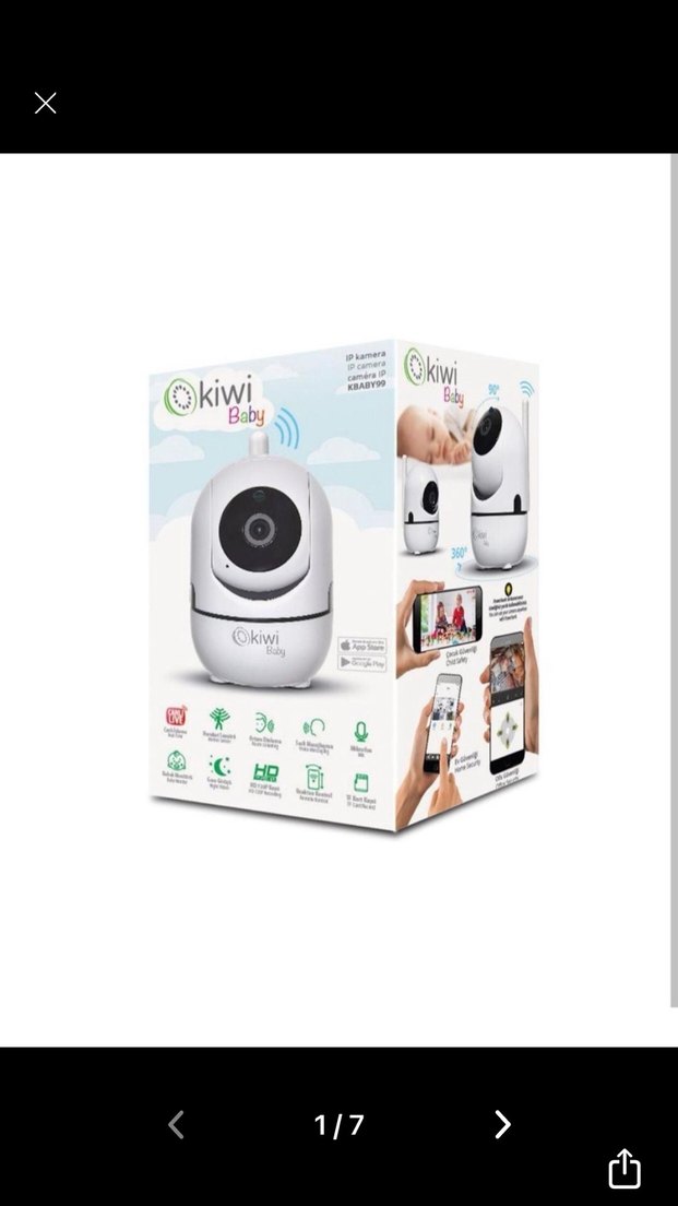 Kiwi Baby beyaz bebek kamerası, HD video, çift yönlü ses ve akıllı telefonla uzaktan izleme özelliklerine sahiptir. 360° dönebilen ve gece görüşlü kamera, kapsamlı bebek takibi sağlar.