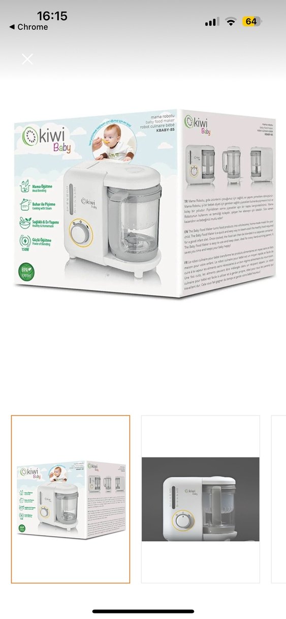 Kiwi Baby beyaz bebek mama robotu, kolay kontrol düğmesi ve şeffaf haznesi ile besleyici yemekler hazırlamaya yardımcı olur. Yiyecekleri buharda pişirip aynı zamanda blend eder. Temiz kullanıldı kutusu mevcuttur