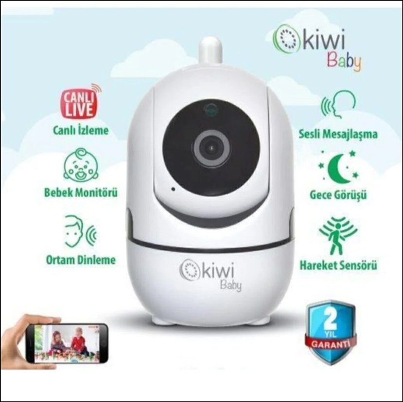 Kiwi Baby beyaz bebek monitörü kamera, canlı izleme, tam dinleme, hareket algılama, sesli mesajlaşma ve gece görüşü özelliklerine sahiptir. 2 yıl garantilidir.