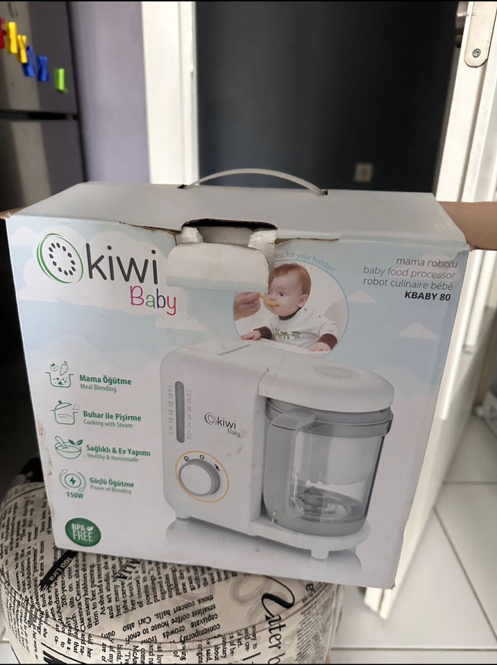 Kiwi Baby KBABY80 mama robotu, 150W güçle buharda pişirme ve sağlıklı mama hazırlama sağlar. Hafif ve BPA içermeyen tasarıma sahiptir.