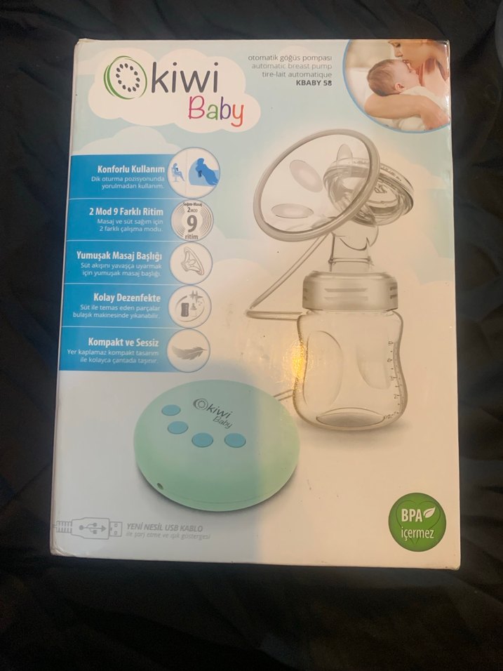 Kiwi Baby göğüs pompası, konforlu kullanım, 2 mod 9 ritim, yumuşak masaj başlığı, kolay dezenfekte ve kompakt sessiz tasarıma sahiptir. BPA içermez.