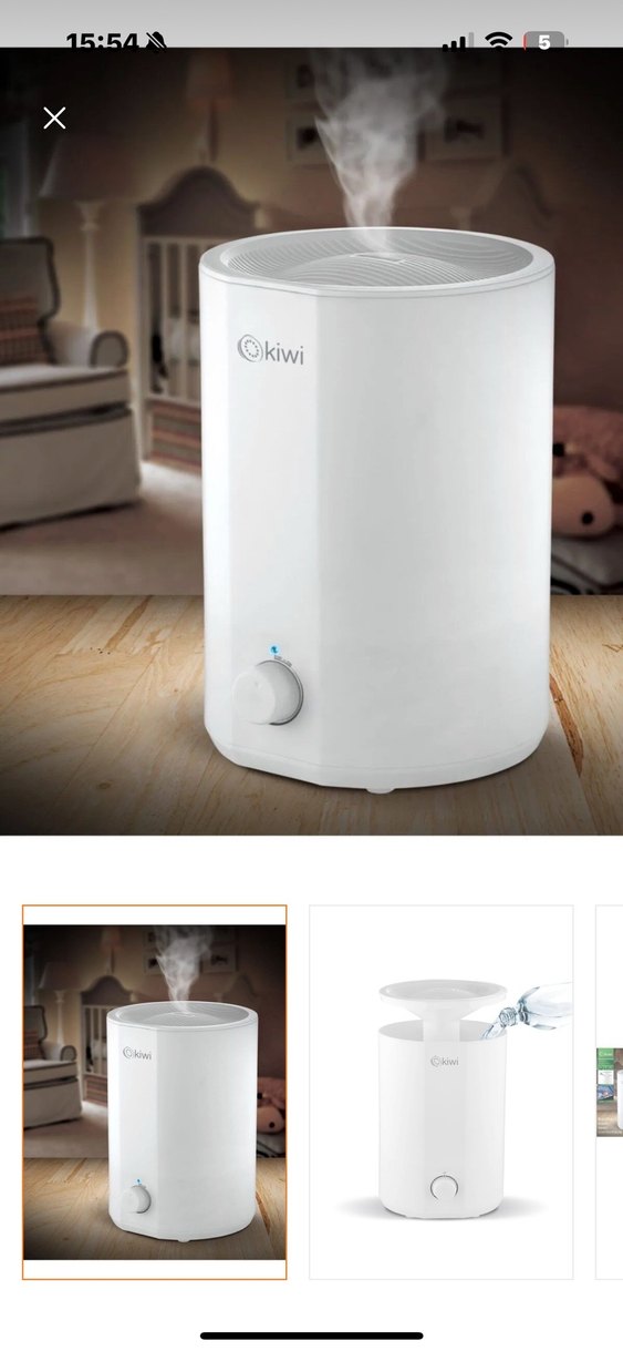 Kiwi beyaz hava temizleyici ve nemlendirici, kompakt tasarımı ve ayarlanabilir kontrol düğmesi ile temiz ve nemli hava sağlar. ️