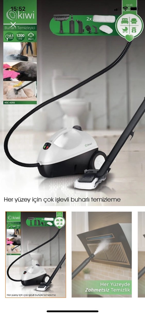 Ckiwi çok işlevli buharlı temizleyici, her yüzey için etkili buhar teknolojisiyle temizlik sağlar. Açık beyaz renktedir hiç kullanılmadı denendi hiç bir sorunu yoktur 3000 tl ye alınmıştır
