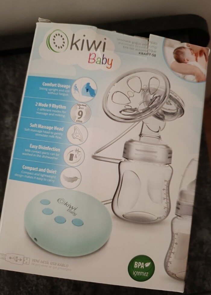 1 adet silikon göğüs ucu hediye!!! Çoookkk işime yaradı 3 kademeli priz başında beklemeden powerbankla istediğiniz yerde kullanabilirsiniz.Sadece biberon ucu yoktur sağım yapıp başka biberona aktarıp o şekilde sütünüzü verebilirsiniz yada biberona uyumla başlık alıp kendi biberonunuda kullanabilirsiniz.Alıcısına hayırlı ve bol sütlü günleri olsun #göğüspompası #sütpompası #sütsağım #kiwi