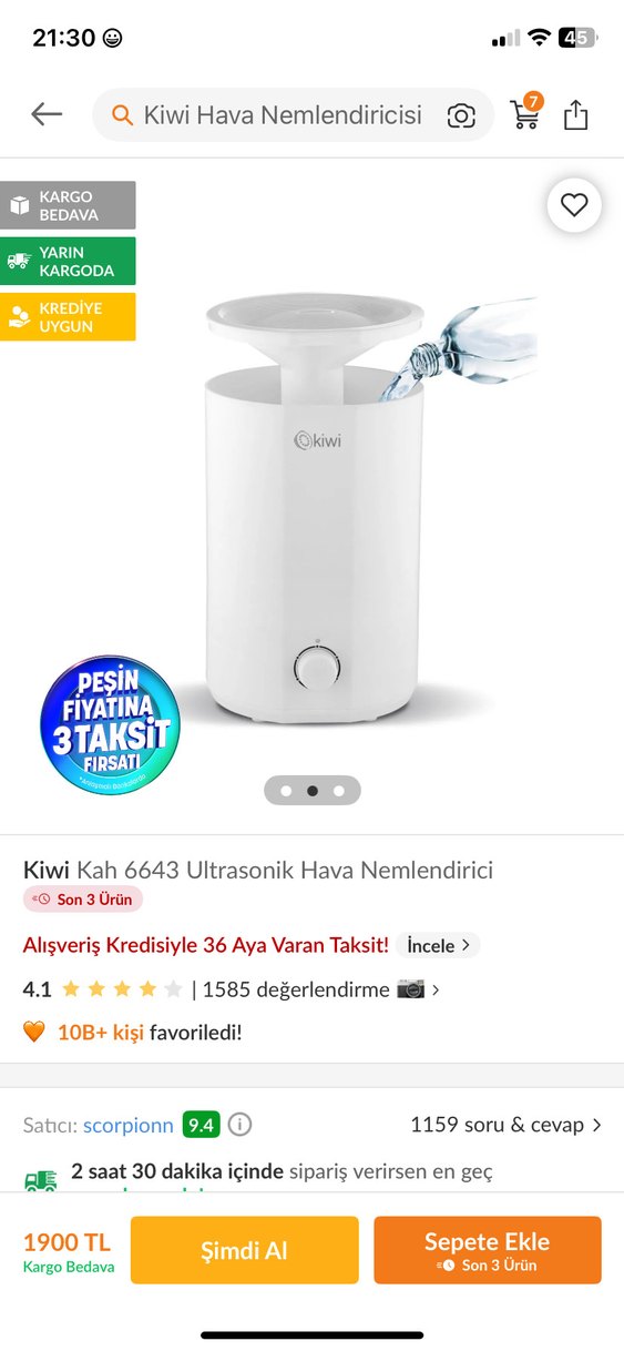 Kiwi Kah 6643 Ultrasonik Hava Nemlendirici