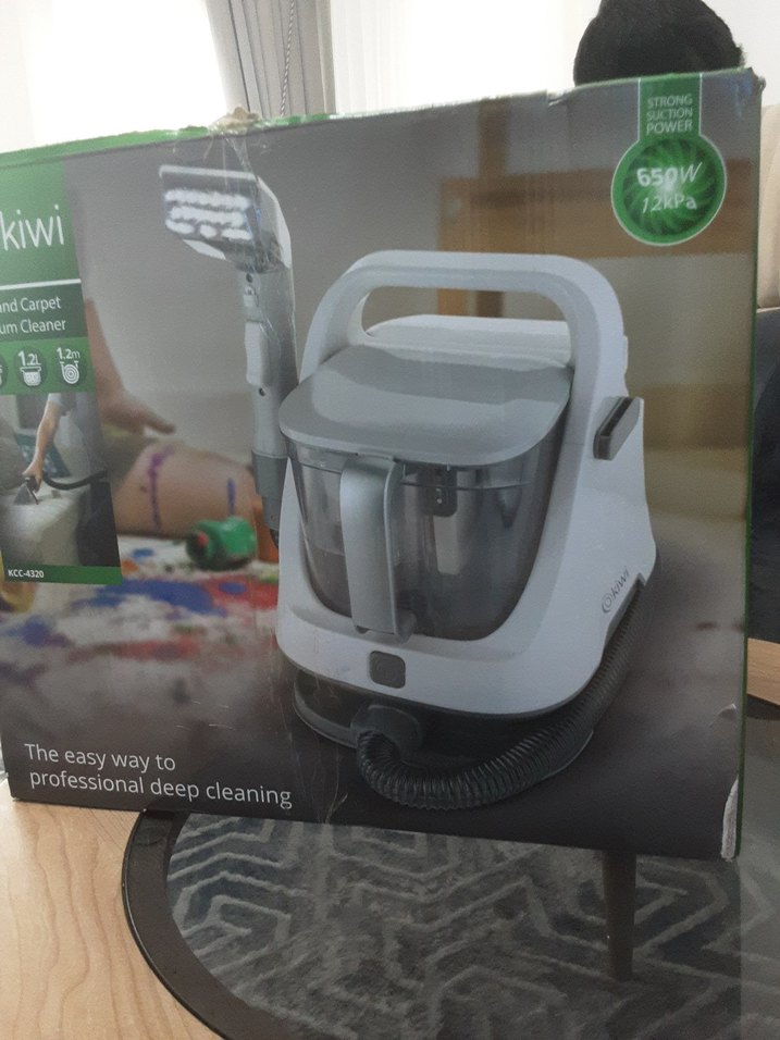 kiwi halı temizleyici, 650W güçlü emiş gücü ve 12kPa ile profesyonel derin temizlik sağlar. Beyaz ve gri renkte, kullanımı kolay tasarıma sahiptir. 3-4 kez kullanıldı sağlam hiçbir sorunu yoktur. garantisi devam etmektedir