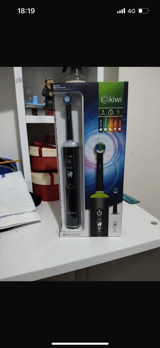 Kiwi siyah elektrikli diş fırçası, çeşitli temizlik modları ve su geçirmez yapısıyla etkili ağız bakımı sağlar. Değiştirilebilir fırça başlığı ve şarj ünitesi bulunur. Hiç kullanılmamış sıfır kutulu 5 tane modu vardır. Basınç sensörü mevcuttur