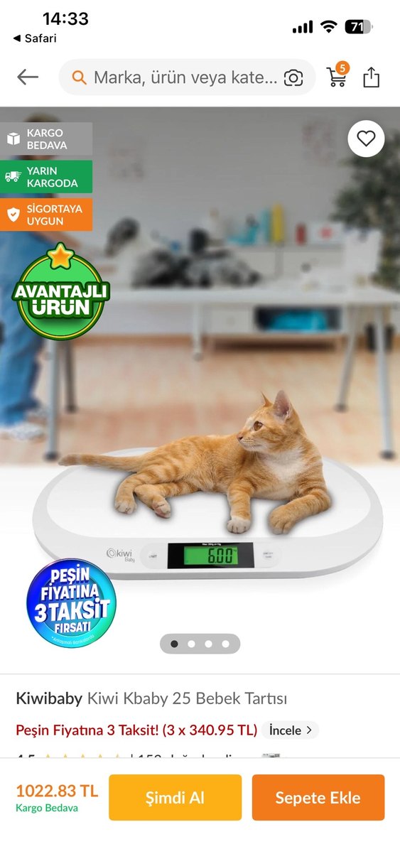 Dijital ekranlı, düz yüzeyli bebek tartısı. Ürün bir kere kullanıldı tertemiz kullanışlı bebeği evcil hayvanı olanlar için ideal