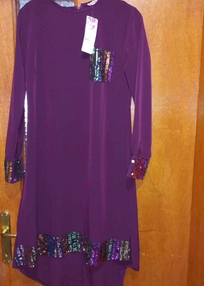 Önü kısa arkası uzun tunik kolları ve önünde pul detayları var İade yok
