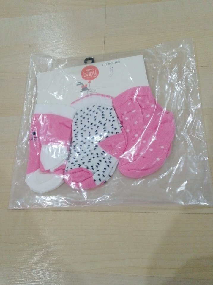 Pastel pembe tonlarında, desenli üçlü kız bebek çorabı seti. Yumuşak sentetik kumaştan üretilmiştir. koton kids marka bebek corap 120 tldir sıfır üründür