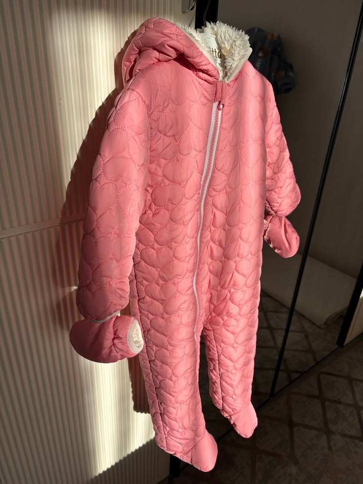 Pastel pembe renkli, kürk detaylı kız bebek astronot tulumu. Kendinden kapşonlu yumuşak dokulu ve eldivenli tasarımıyla sıcak tutar. Hiçbir sorunu yok o kadar yeni ki 3-4 defa kullanıldı sadece yıkayıp dolaba kaldırdım satmaya kıyamıyorum ama küçük maalesef alan kişi çok memnun kalacaktır. Taş gibi ürün sıcacık tutuyor