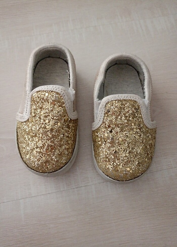 Kız bebek Gold pullu simli ayakkabı temiz kullanılmış 1 yaş 21 numara