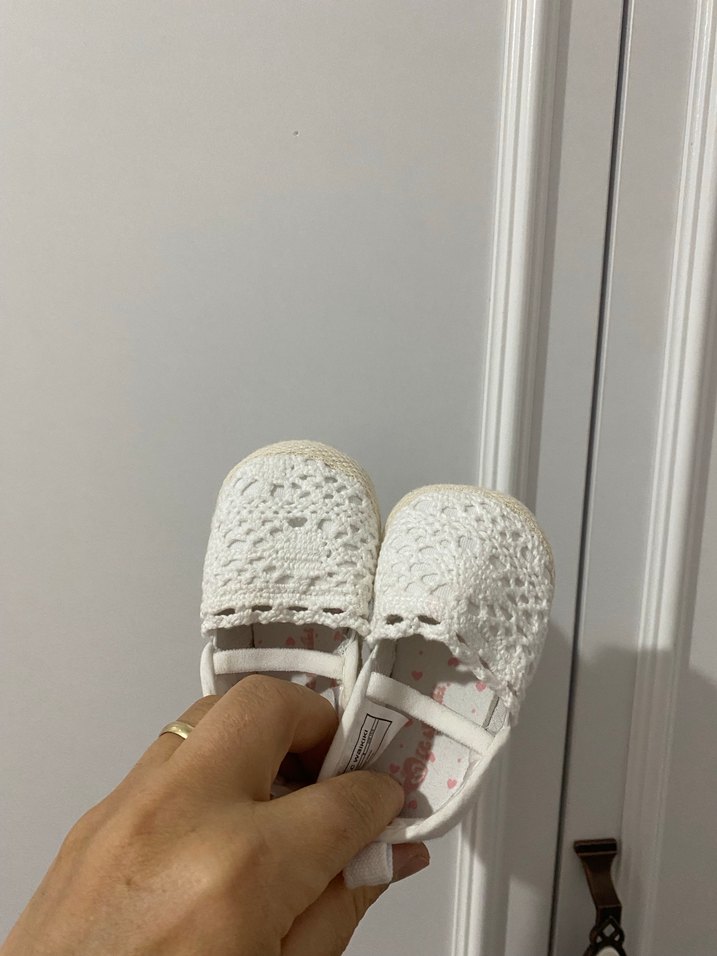 Kızlar için beyaz dantel işlemeli bohem tarzında ilk adım ayakkabısı. Kauçuk tabanlı, hafif ve trend bir model.