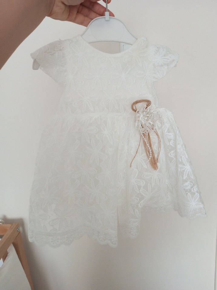 Kız bebek için beyaz, dantel ve nakışlı çiçek desenleriyle süsleniş dantelli elbise bir kere giyildi hiç bir sorunu yok.