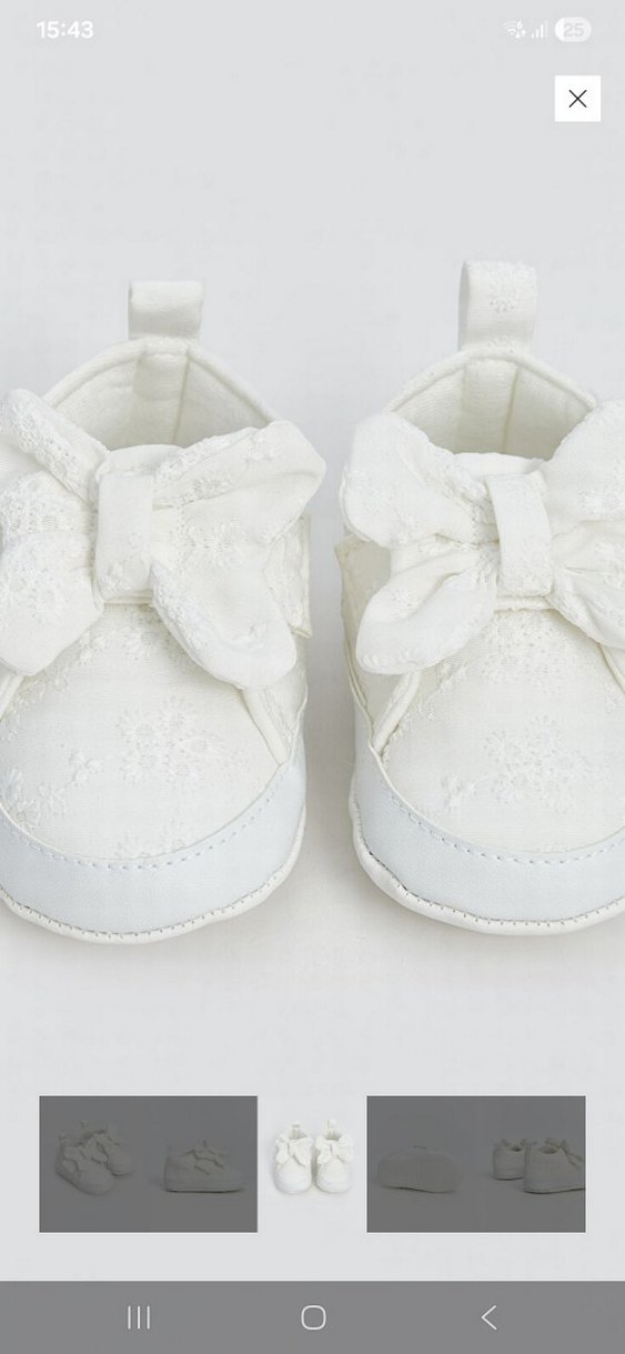 Kız bebekler için beyaz, nakışlı desenli ve fiyonk detaylı modern klasik tarzda ilk adım ayakkabısı. Rahatlık için yumuşak kauçuk tabanlı.