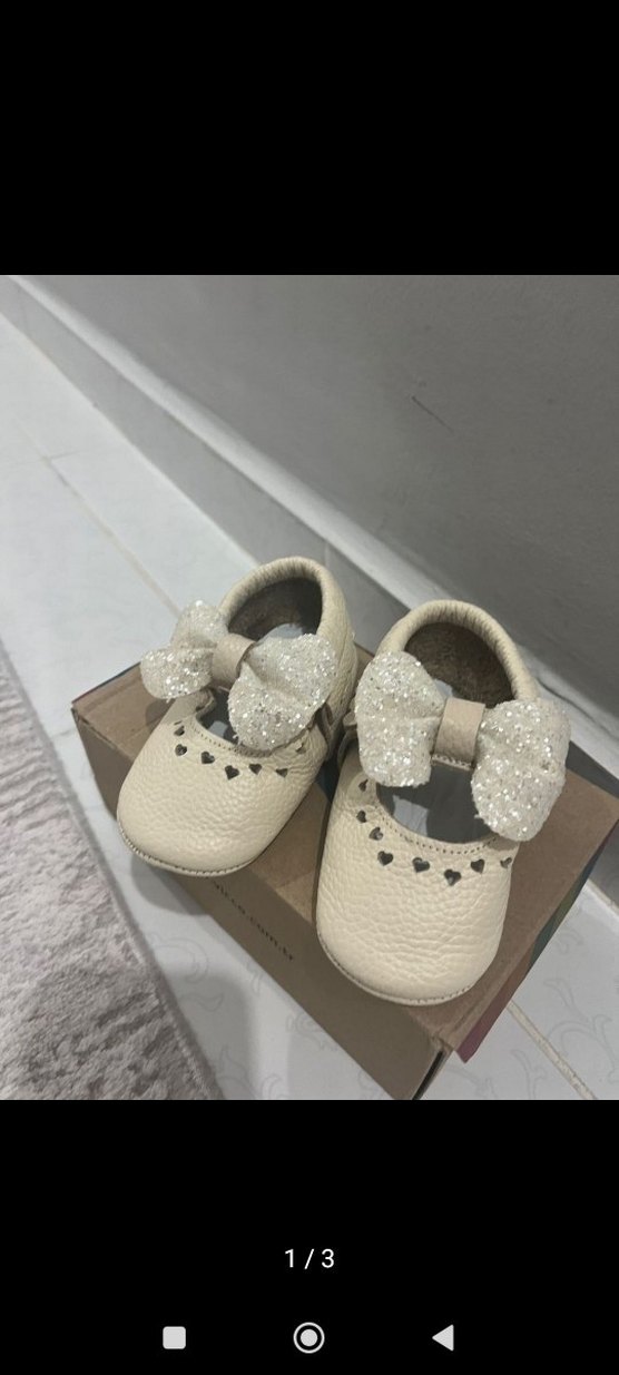 Kız Bebek Beyaz Fiyonklu İlk Adım Ayakkabısı