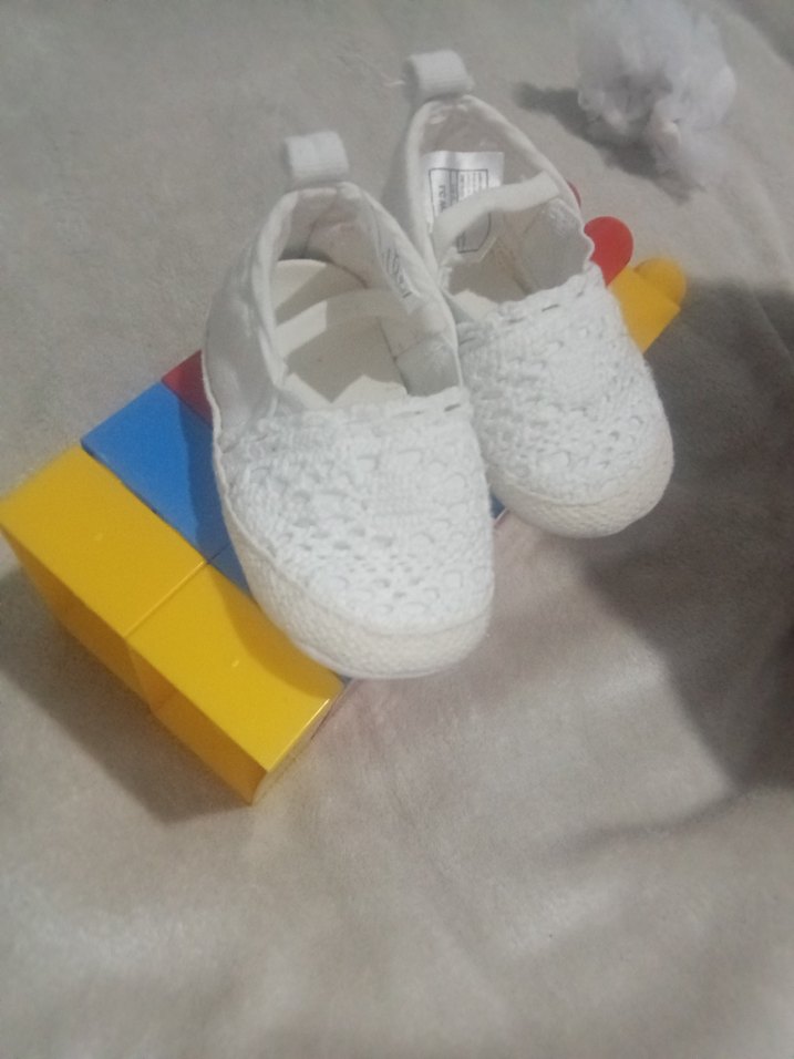 Kız bebekler için beyaz ilk adım ayakkabısı, kauçuk taban ve cırt cırtlı kapanışa sahip, trend sokak stili için uygun. 2 kere kısa sure kullanıldı