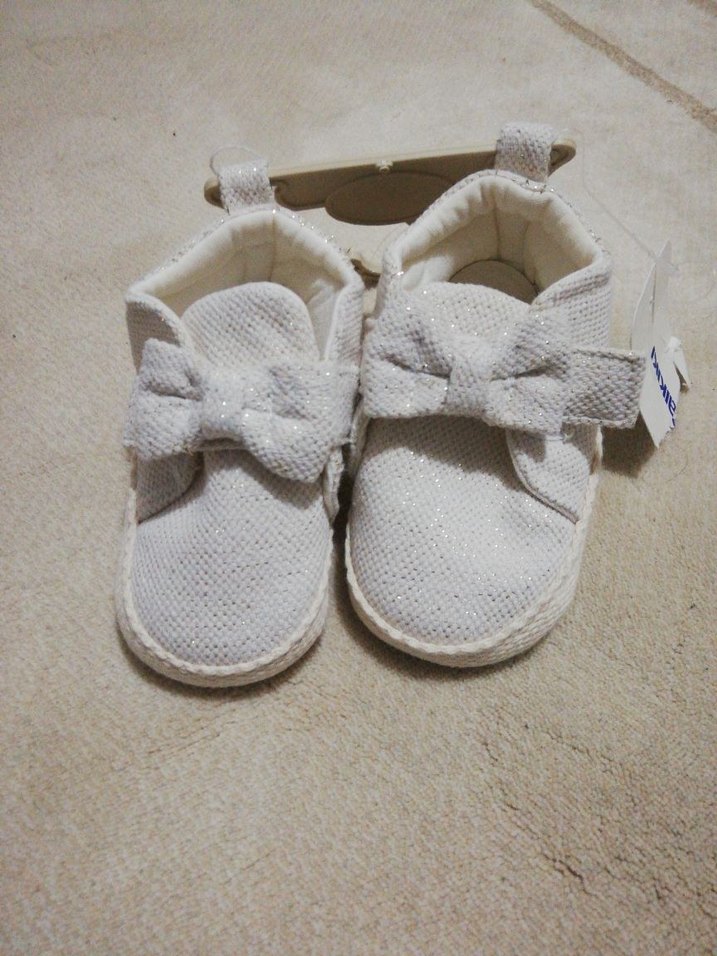 Cırt cırtlı bantları ve kauçuk tabanlarıyla beyaz kız bebek ilk adım ayakkabısı, rahatlık ve kullanışlılık sağlar. 20 no simli çok şık hiç kullanılmadı