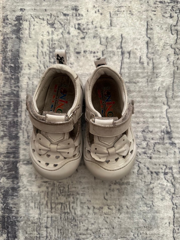 Kız bebekler için beyaz, yılan desenli ilk adım ayakkabısı. Kolay giyim için cırtcırtlı, kauçuk malzemeden yapılmıştır. Trend sokak tarzına uygun.
