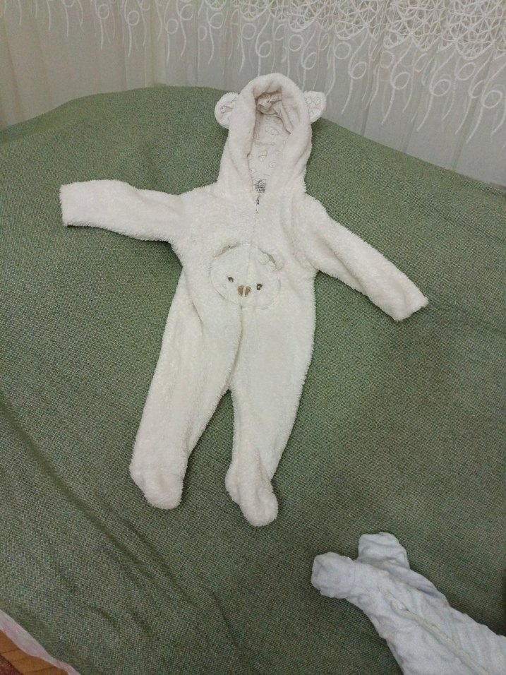 Kız Bebek Beyaz Kapüşonlu Peluş Tulum
