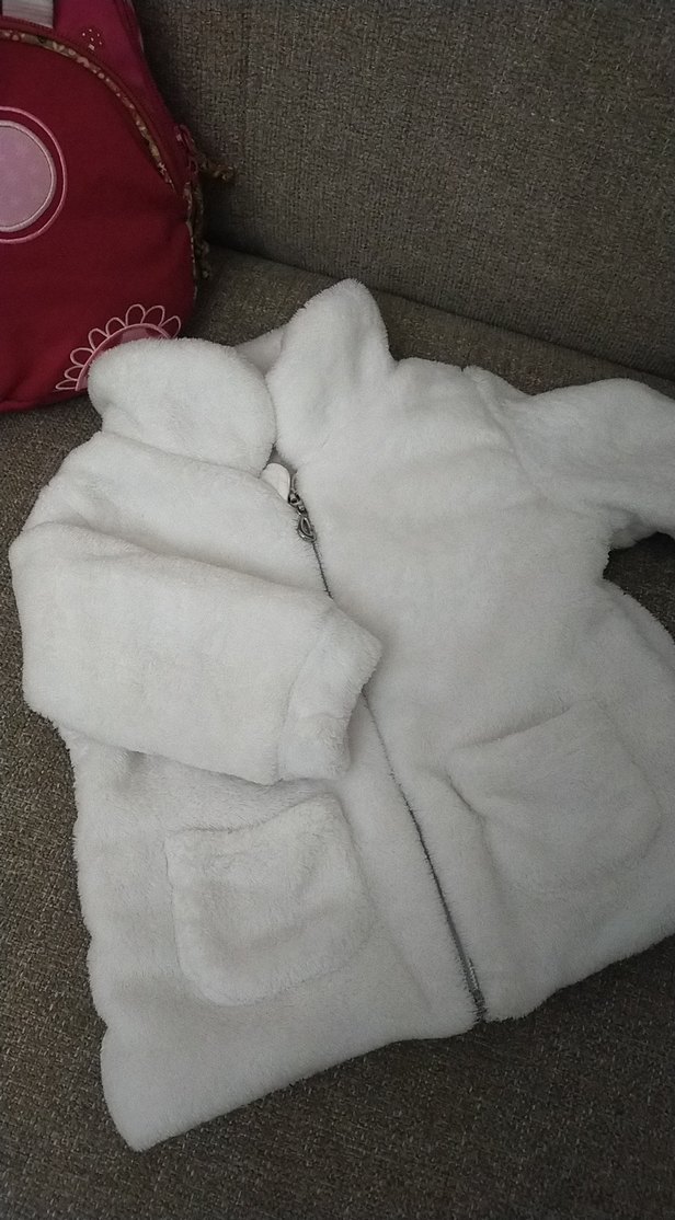 Uzun kollu, beyaz mont, kürk detaylı, günlük kullanım için uygun 9-12 kız bebek için uygundur iç kısmı pamuklu kumaştır.