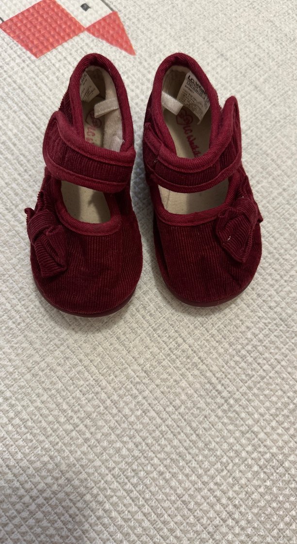 Bordo renkli kız bebek ev ayakkabısı tokalı bant ve kauçuk tabanlı yumuşak kumaştan yapılmıştır. Düz, desensiz ve bohem tarzdadır. (22-23 numara, 1,5-2 yaş)