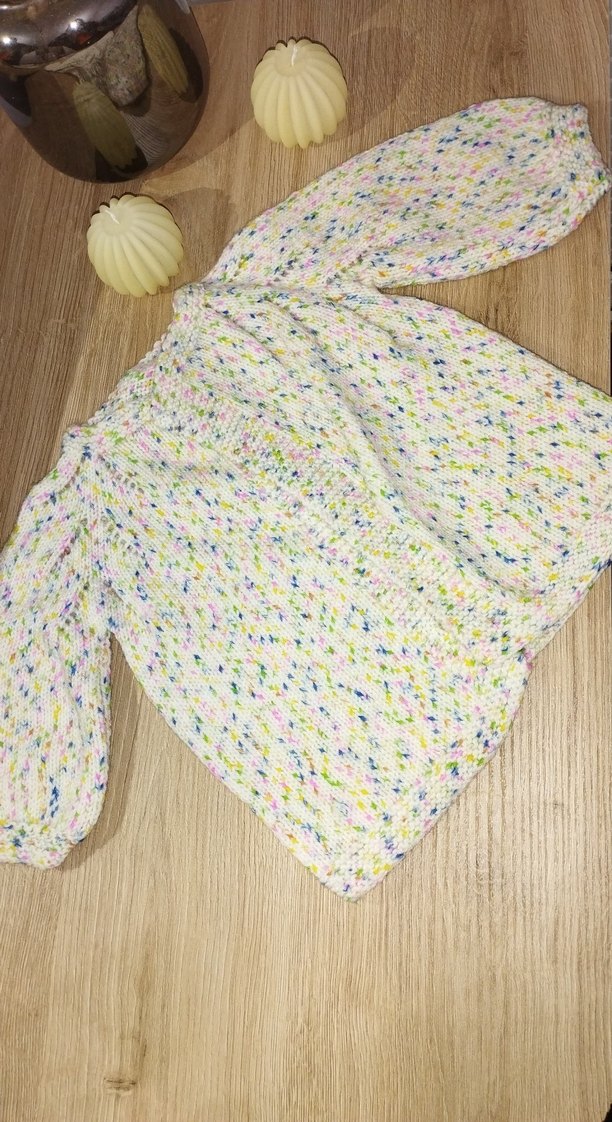 Kız çocuklar için bol kesim, el emeği ,uzun kollu, bohem tarzda çok renkli pastel detaylara sahip örgü hırka.
