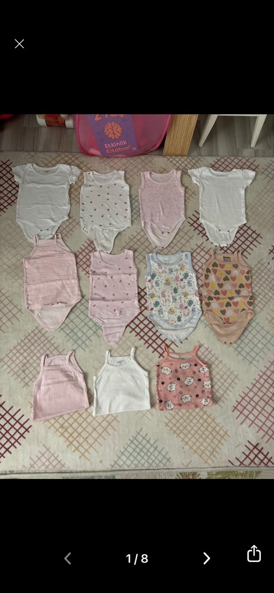 Pastel renklerde, dantelli ve askılı boyunlu kız bebek body seti. Farklı desenler ve yumuşak kumaşlar içerir.