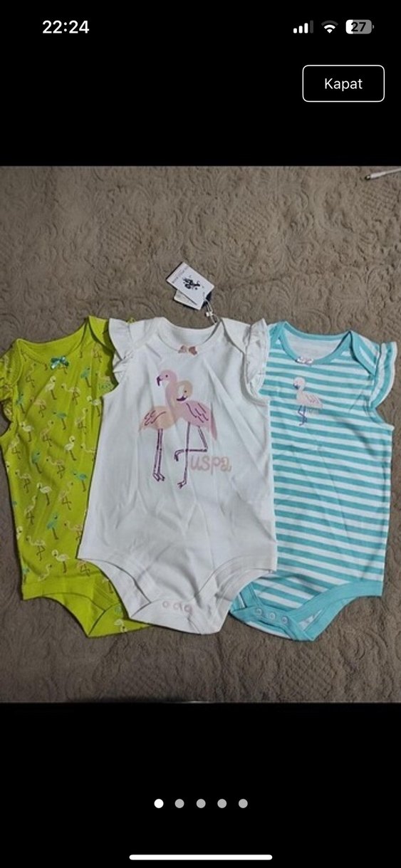 Kolsuz, dantelli ve baskılı desenli kız bebek bodyleri, pastel renklerde ve straplez yakalı, çok renk seçenekli.