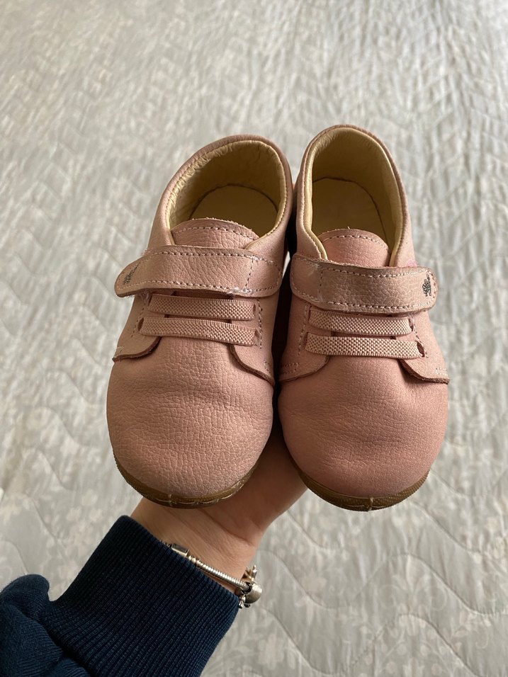 Yumuşak pembe deri kız bebek ilk adım ayakkabısı, sade tokalı tasarıma sahip. Pastel tonlarda rahatlık ve destek sunar.