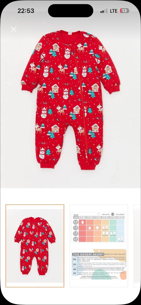 Renkli desenlere sahip kırmızı kız bebek triko tulumu, yuvarlak yakalı ve sıcak tutan dokunmuş kumaftan üretilmiştir. ❄️