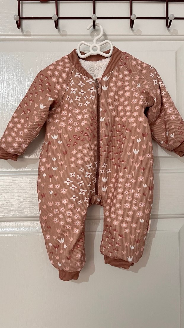 Bu kız bebek tulumu pastel kahverengi renkte, düğmeli ön ve yakasında kesik yakalıdır. Yumuşak kumaş üzerinde hafif çiçek ve yıldız desenleri bulunur. ❄️ 1 kere giydirdim.60 cm 6 kg bebeğime tam oldu. 9 aylık olarak geçiyor. Necix’s marka