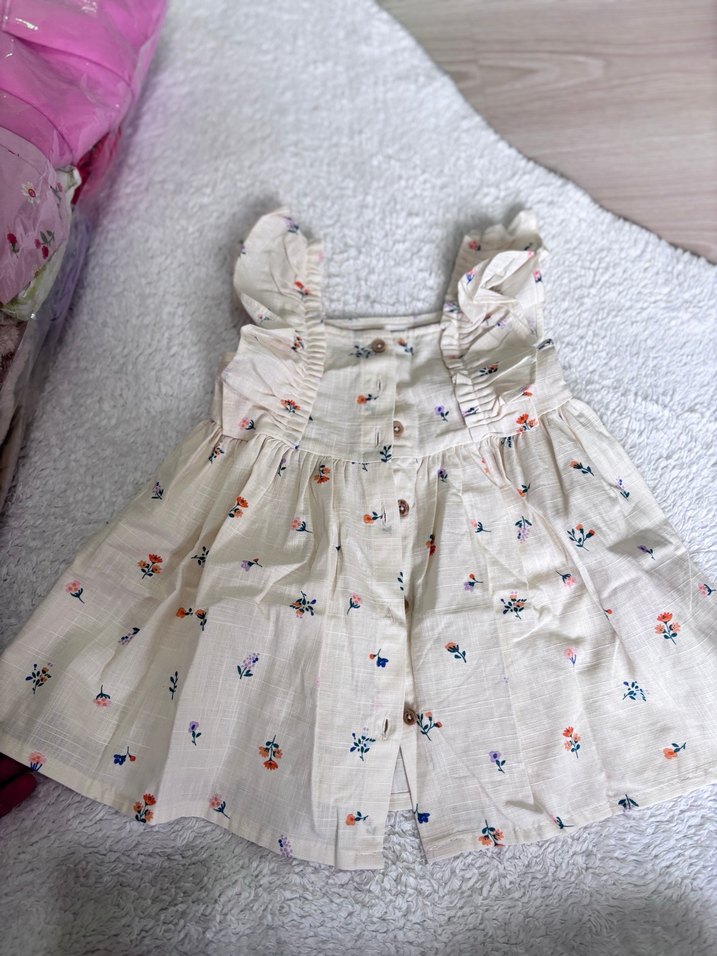 Nakışlı çiçek desenleri ve fırfır detaylara sahip, pamuklu, askısız ve kolsuz elbise. Bol kesim ve pastel beyaz renkte, bohem tarzda.