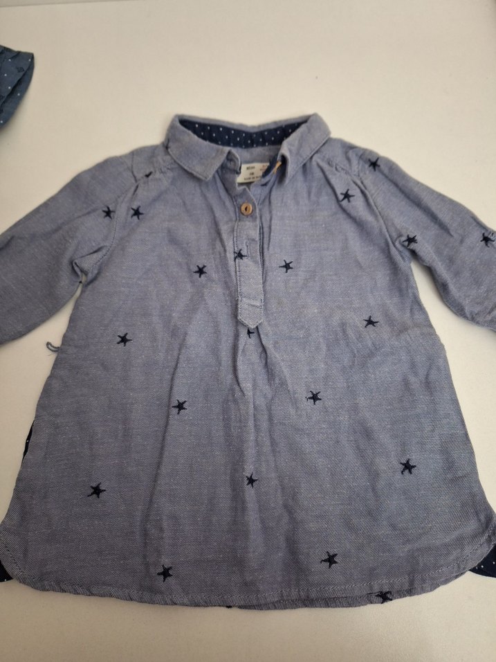 Gri denim kumaştan, uzun kollu, yakalı ve düğmeli erkek çocuk gömleği. İşlemeli yıldız desenleriyle rahat ve şık bir görünüm sunar. ⭐