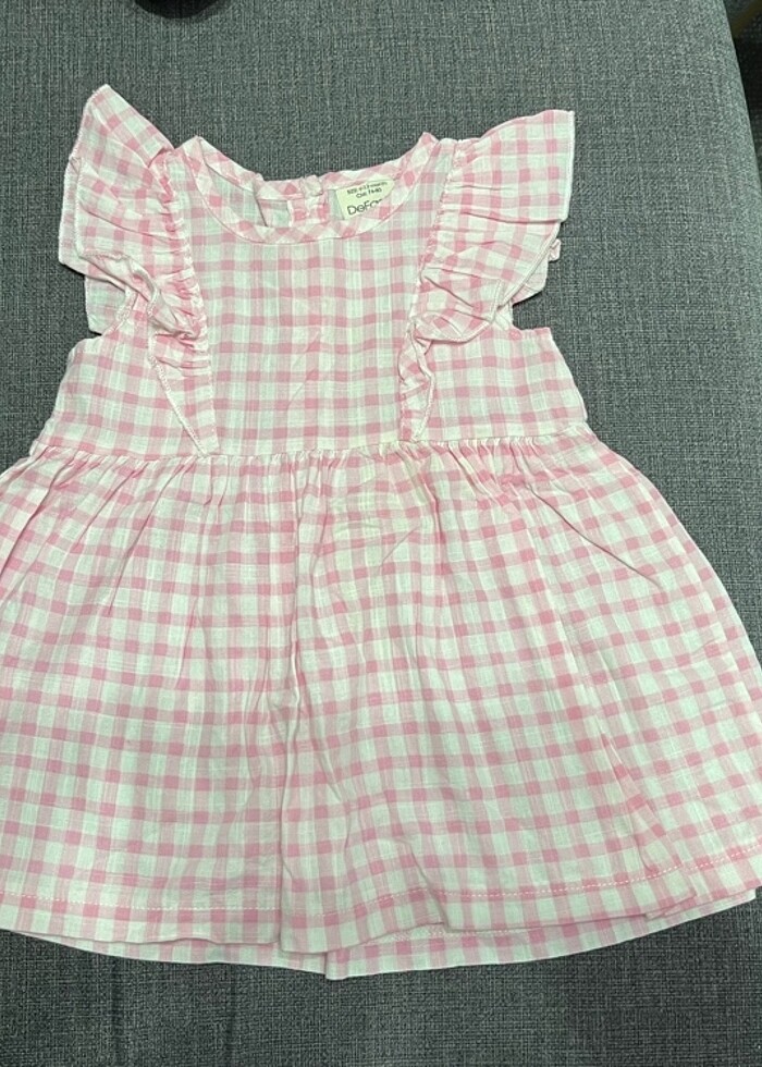 9 ile 12 aylık arası bebek pöti kareli pembe elbise