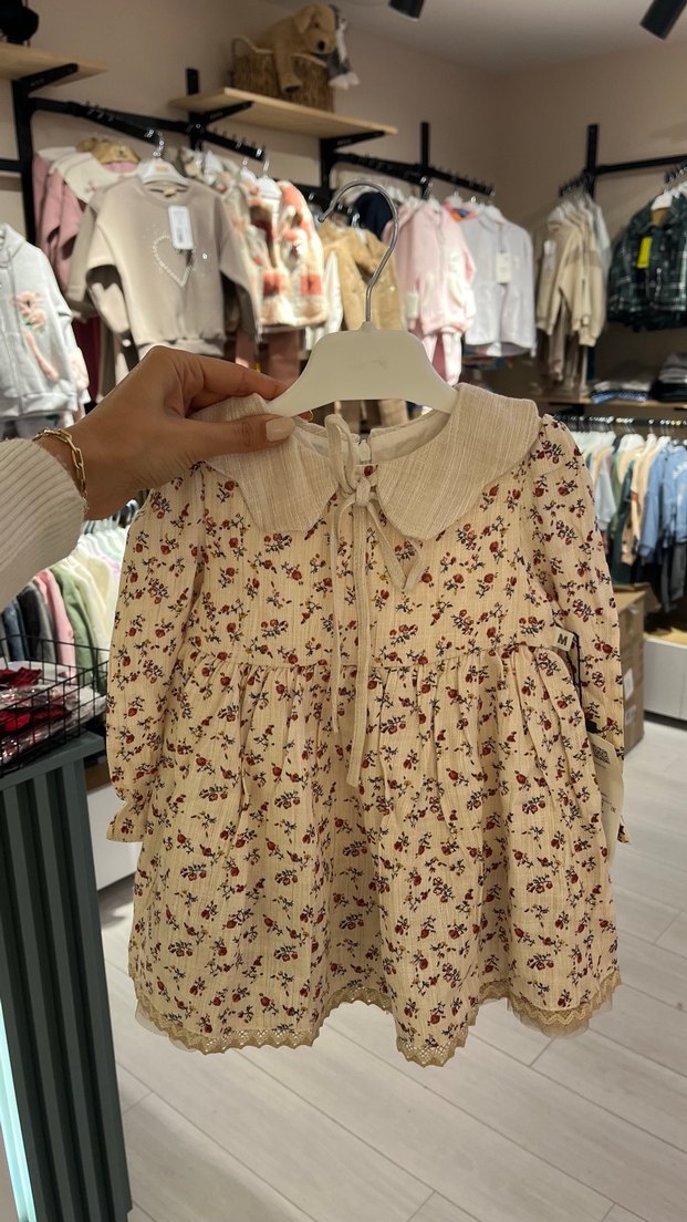 Kız Bebek&Çocuk Elbise Çiçekli Yaka ve Tül Detaylı Müslin Kumaş 6-12-24 ayları mevcut