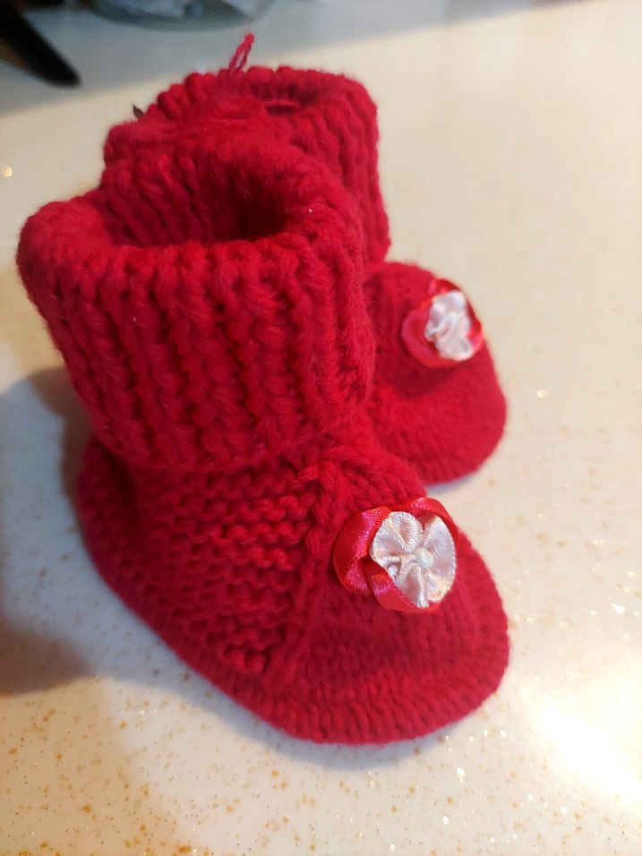 Kız bebekler için fuşya örgü botlar, önünde nakışlı çiçek detayı ve konvansiyonel rahat bir tasarıma sahiptir.