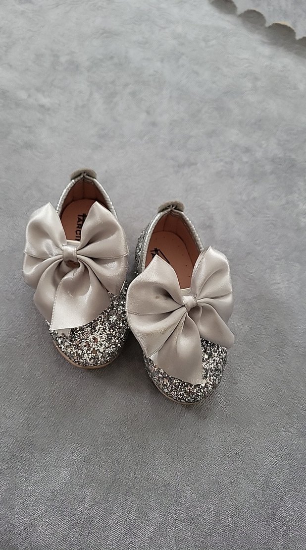 Gri renkte, büyük fiyonk detaylı kız bebek ayakkabısı