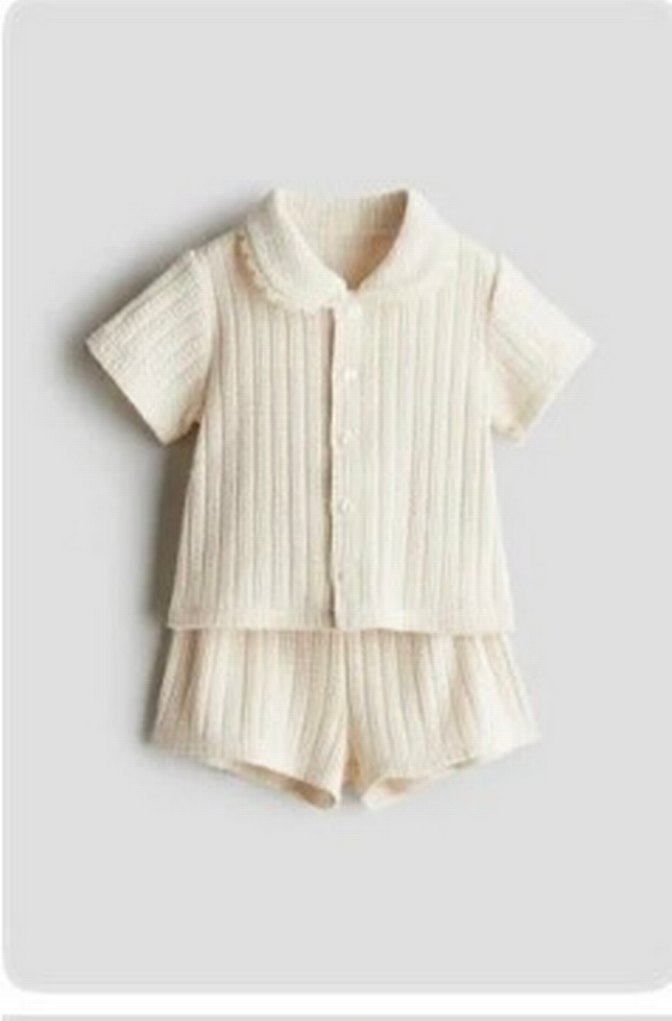 Kısa kollu, nakışlı ve bol kesim bej renk kız çocuk. Düğmeli ön kısmı ve zarif yakası vardır. Altı şortlu