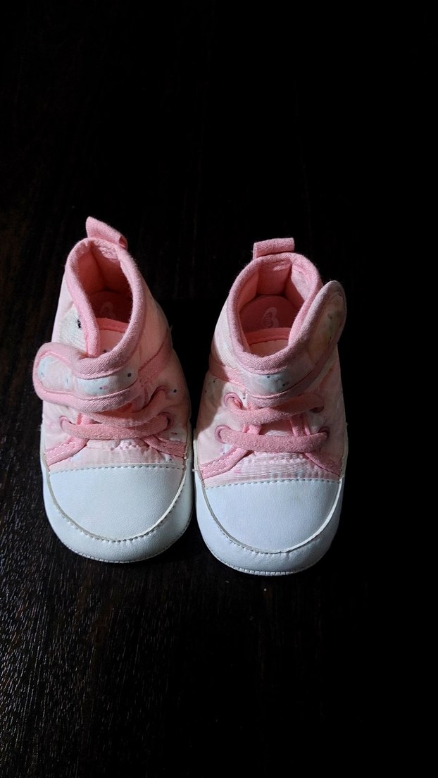 Kızlar için pembe ilk adım ayakkabısı, cırt cırtlı bant ve yumuşak kauçuk malzemeden yapılmıştır. Basit, pastel renkte günlük kullanım için uygundur.