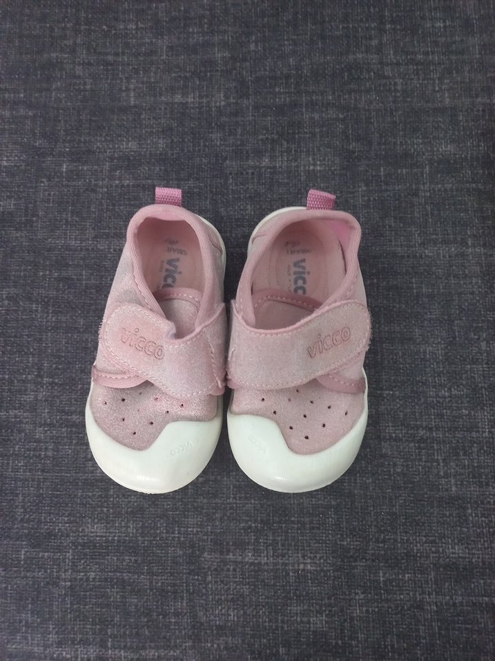 Cırt cırtlı ve kauçuk tabanlı, pastel pembe renkte kız bebek ilk adım ayakkabısı. yıkamadan dolayı rengi açıldı onun dışında bir sorunu yok ortopedik ve orjinal marka